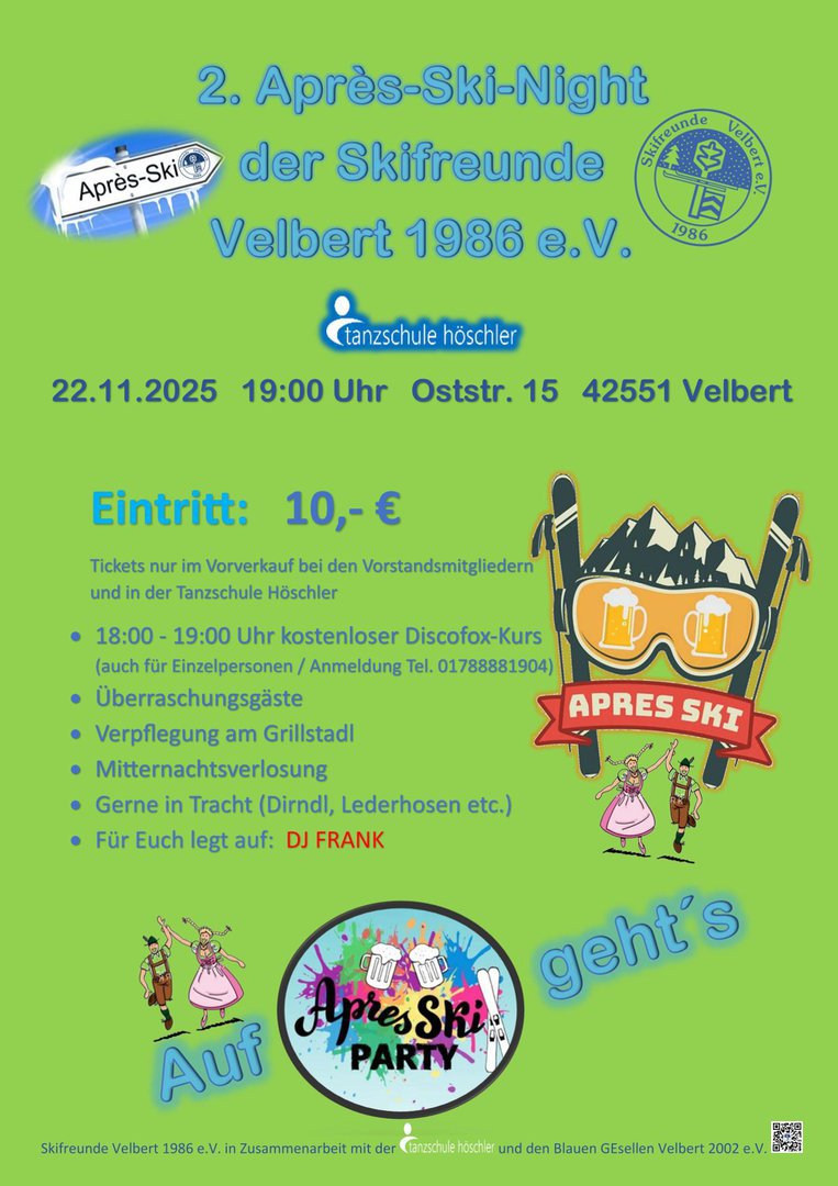In den Skifreunde Velbert 1986 e.V. haben sich Skibegeisterte aus der Region Velbert zusammen getan um gemeinsam Spaß an ihrem Hobby zu haben.